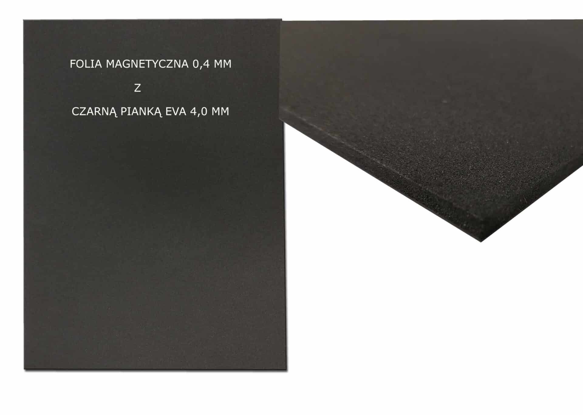 Folia magnetyczna 0,4 mm z czarną pianką Eva o grubości 4,0 mm nadaje się do prac plastycznych, kreatywnych lub do zastosowań produkcyjnych.