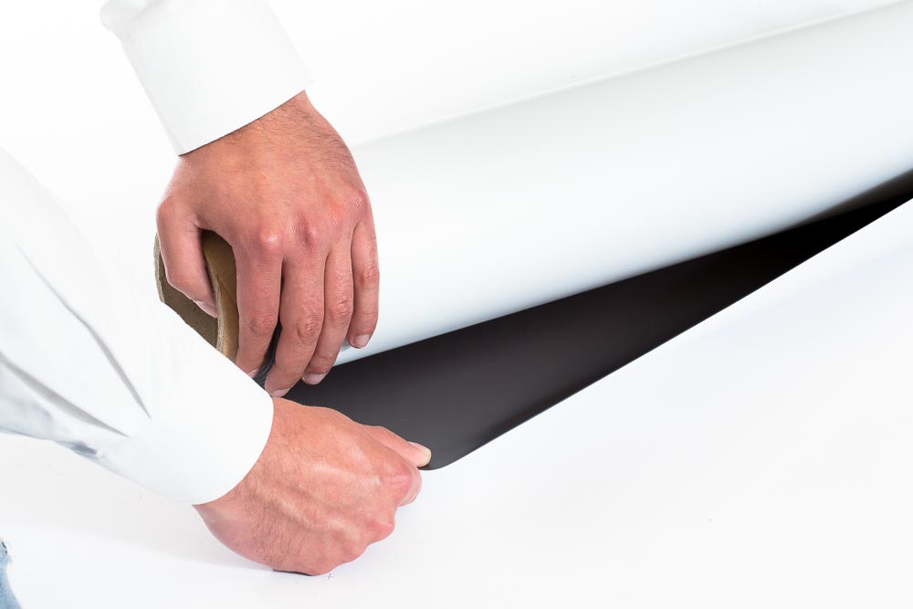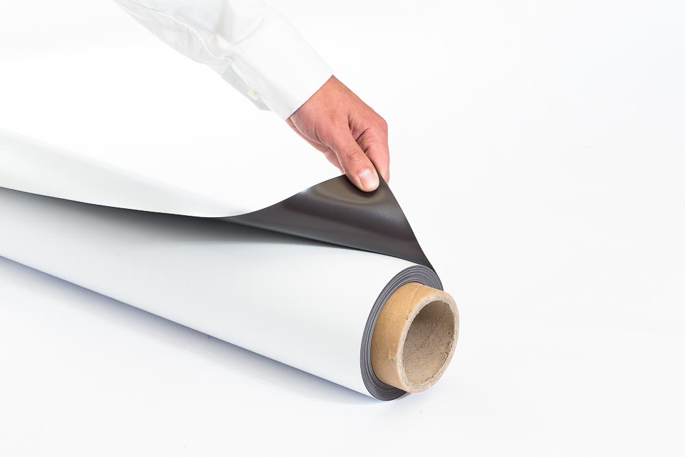 Folia magnetyczna biała 0,4 mm to standardowy materiał magnetyczny do wykonania magnetycznych tabliczek suchościeralnych lub tabliczek informacyjnych.