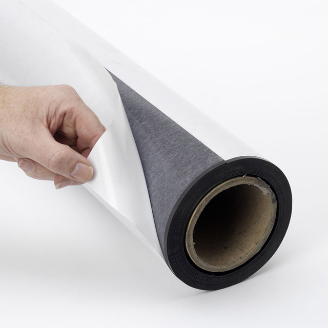 Folia magnetyczna biała z klejem 0.4 mm  jest pokryta białym laminatem na magnetycznej stronie, natomiast strona niemagnetyczna jest pokryta warstwą kleju, która umożliwia przyczepienie folii do dowolnej powierzchni.