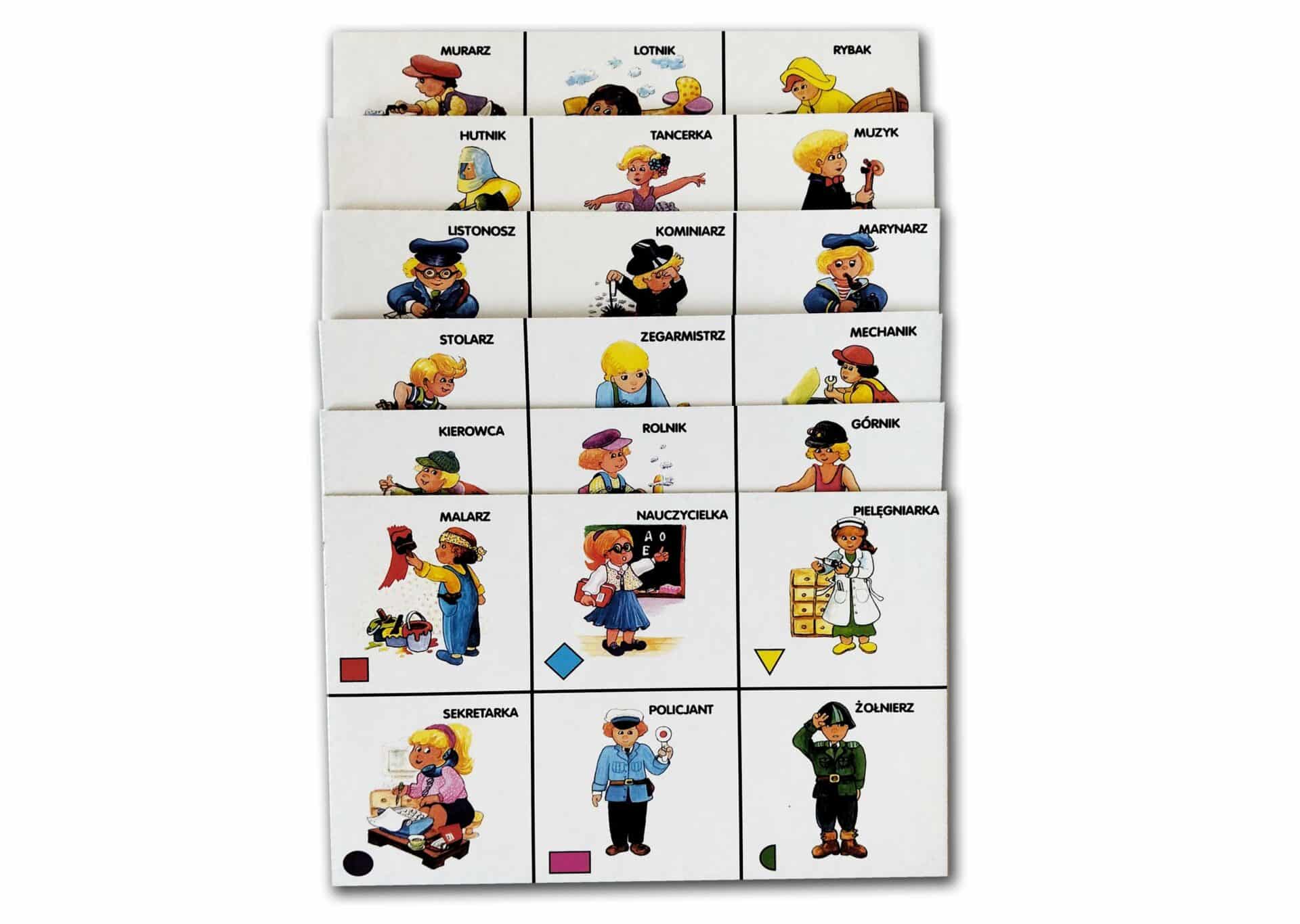 - 6 plansz do gry z nazwami 36 różnych zawodów