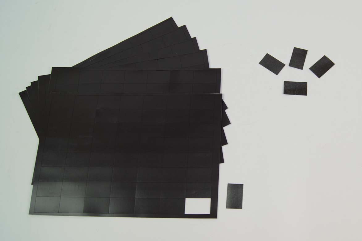 Samoprzylepne płaskie naklejki z folii magnetycznej są gotowe do użycia bezpośrednio na produkcie. Wymiar jednej naklejki to 20 mm x 40 mm. Ilość naklejek w arkuszu to 70 szt.